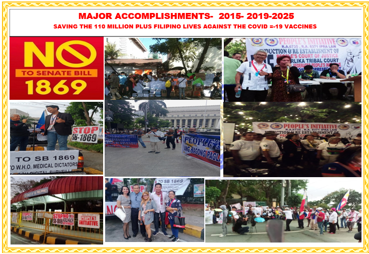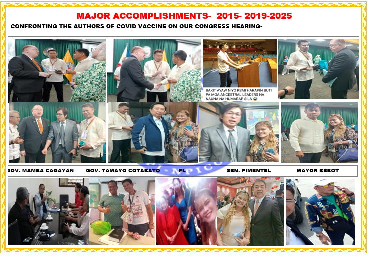 A DIRECT CONFRONTATION TO CONGRESS AND THE DEPARTMENT OF HEALTH ASEC ERIC TAYAG, WITH THE PRESENCE OF CONG. DAN FERNANDEZ, CONG. BOSITA DURING THE CONGRESS HEARING ON EXCESS DEATH ON FEBRUARY 2024 OF CULPABLE VIOLATION OF THE CONSTITUTION ON THE IMPLEMENTATION OF FORCE VACCINATION OF COVID VACCINES AND FORCE LOCKDOWN FROM 2020-2022 PANDEMIC (PLANDEMIC) WHICH PI-NPICC HAS TERMINATED THROUGH PI-NPICC DEMAND RESOLUTION NO.01,2023 TO TERMINATE THE IMPLEMENTATION DUE TO MASSIVE DEATH REACHING 300,000 INCLUDING NURSES, DOCTORS, POLICEMEN,SOLDIERS DUE TO ADVERSE EFFECT OF THE VACCINE AND THE ATTEMPT TO PASS THE SB 1869 BILL THAT CREATES A VIRUS LABORATORY IN THE COUNTRY THROUGH CDC(CENTER FOR DESEASE CONTROL WITH A WHOOPING AMOUNT BUDGET OF 900 BILLION) ANNEX OF CDC CHINA AND USA, AND FORCE VACCINATION OF DIFFERENT VIRUS EACH TIME IT ENTERS THE COUNTRY. THE PI-NPICC WAS ABLE TO KILL THAT BILL ON THE LAST 11TH SESSION OF THE SENATE MAY 31,2023 AND WAS NEVER MADE ATTEMPT TO PASS.