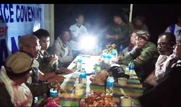 WITNESSED BY 11TH IB STATION COM. M/GEN.IGNATIUS PATRIMONIO, B/GEN. TAHARUDIN AMPATUAN, P/COL PD NARCISO PARAGAS, PNP LAWYER MARLON LAO, P/LT.COL KRIS GUTIEREZ ,LT. COL VICENTE MAMBORANG JR,MNLF GEN. OMAR SAMPANG, MNLF. GEN. WINNIE HADJIRUL, PROF.CAPT. REY VALEROS(PINN), PI-FERDINAND LAGUNDINO(PINN),ROWENA VARGAS (PINN), SONIA VALEROS(PINN)SUCCESSFULLY ESTABLISHING THE PEACE NEGOTIATION BETWEEN THE GOVERNMENT AND MNLF CAMP MUDJASAN